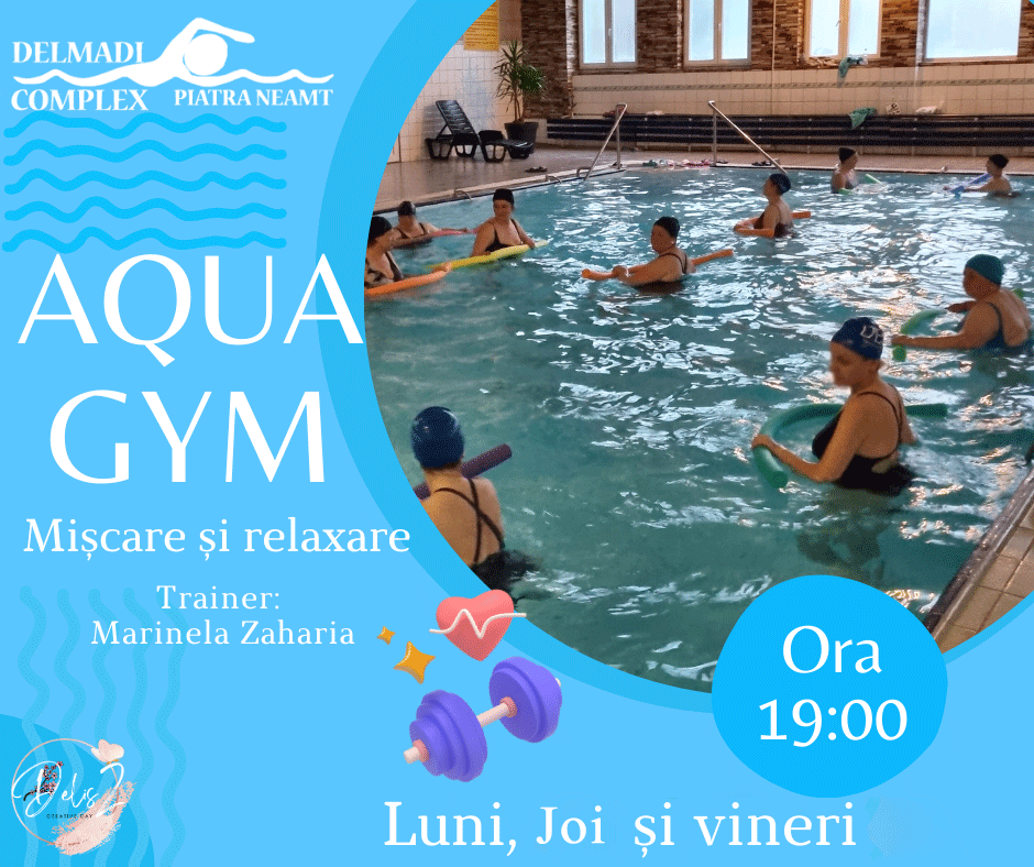 Aquagym (gimnastica în apă) reprezintă o metodă ingenioasă de a face mişcare şi de a te relaxa, în acelaşi timp. Prin calităţile sale terapeutice de calmare şi revigorare, apa conferă o stare de bine, de relaxare, iar exerciţiile efectuate în apă ajută la oxigenarea ţesuturilor musculare, la îmbunătăţirea rezistenţei cardio-vasculare şi scăderea tensiunii arteriale, la reglarea nivelului de zahăr în sânge, la pierderea în greutate şi modelarea siluetei, precum şi la reducerea stresului.